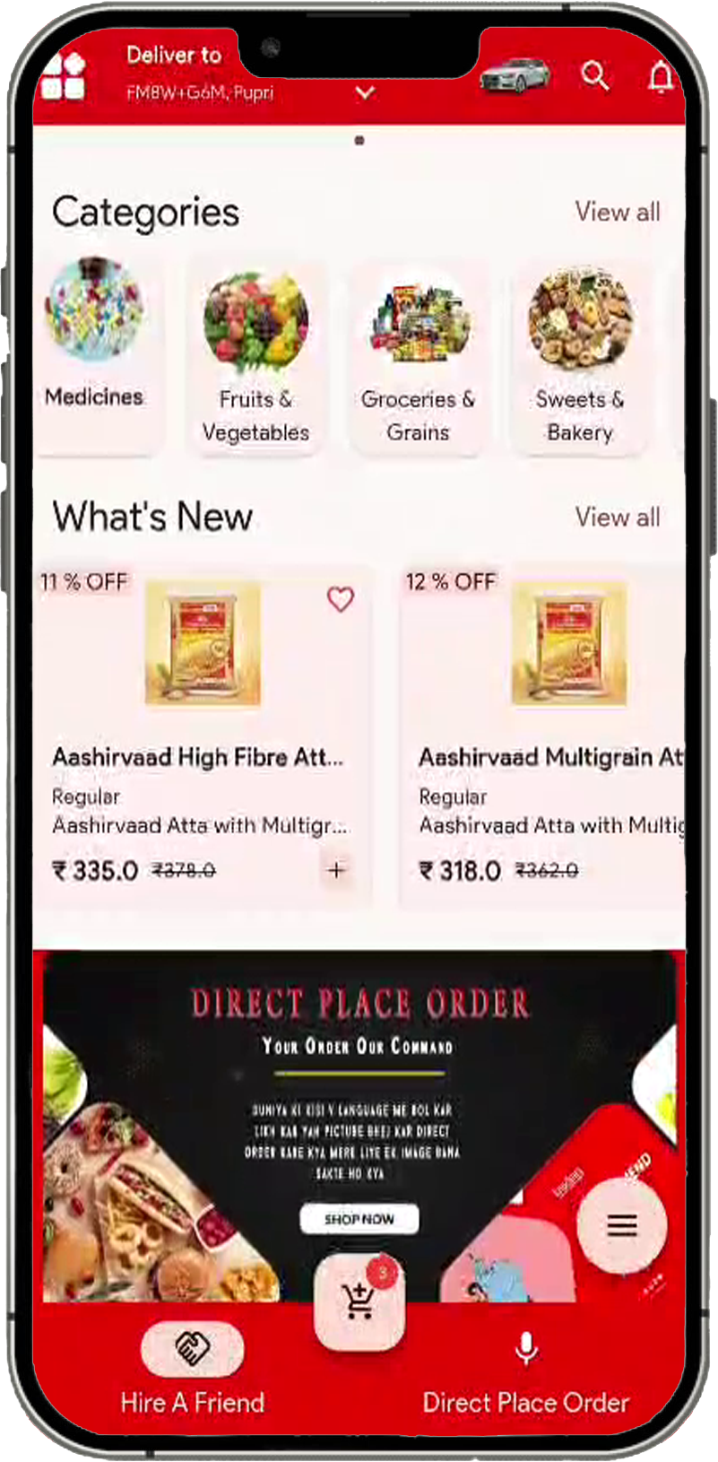 Get groceries, medicines, and daily essentials delivered the same day. Place direct orders, hire a friend, book a pick & drop service or order quickly by voice, image, text, or call.