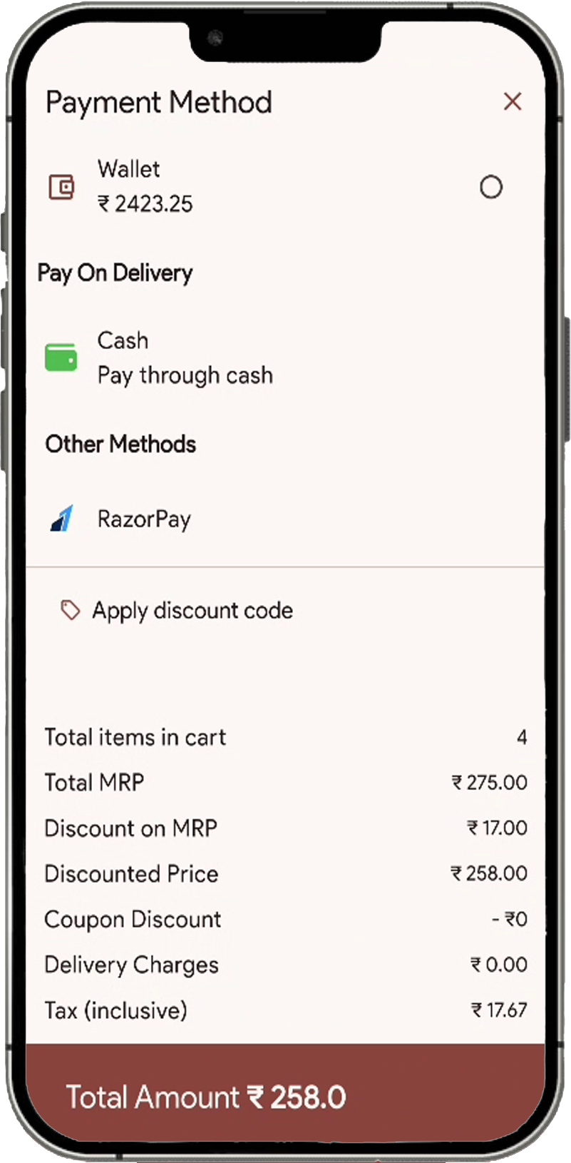 Make worry-free payments using UPI, cards, wallets, or COD with complete security.